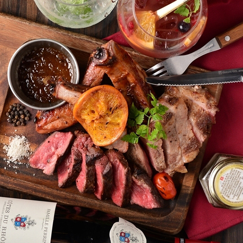 只今当店ではステーキなどお肉をふんだんに使用した、8月限定【肉スペシャルコース】通常4,500円(税込)を1,000円OFFの3,500円(税込)でご提供いたします!
